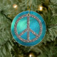 PEACE symbol - SILVER | bluegreen waves Ceramic Ornament