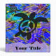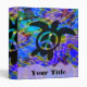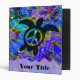 A swimming peace symbol sea turtle on a purple and blue abstract background. Colorful sea turtle art binder -- add your title or name to the front to customize it.