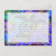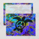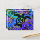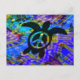 A swimming peace symbol sea turtle on a bright abstract background. With lines on back for notes--not designed for mailing.