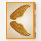 A simple, golden-winged design symbolizing freedom and transcendence, set against a light dotted background, evoking elevation and the pursuit of limitless potential. "Original Image was generated by Meta AI. AI generated artwork. Licensed under CC BY-SA 4.0."