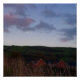 Powys, Wales. Modern houses and ancient hills lit by setting sun. The moon and clouds above. By Alexandra Cook aka Linandara.