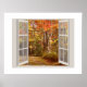 Peaceful fall scene viewed through an open window poster