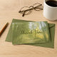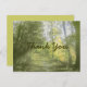 Send a heartfelt note of gratitude with this serene forest-themed thank you postcard. Featuring a sun-dappled woodland path and elegant script, this design evokes a sense of calm and reflection—perfect for expressing appreciation after weddings, memorials, retreats, or personal milestones. The soft green tones and nature-inspired background make it suitable for both formal and casual occasions. Printed on quality cardstock, this postcard offers a peaceful and memorable way to say "thank you."