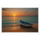 Peaceful Golden Sunset with Boat on Beach Poster