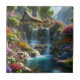 Peaceful mountain cabin waterfalls flowers ceramic tile