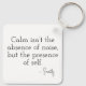 From the painting Serenity, this keychain shows a calm female face with closed eyes, rendered in gentle pastel pixel tones. The back features the quote "Calm isn’t the absence of noise, but the presence of self." A soothing and mindful piece to carry a moment of stillness with you.