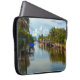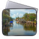 Stay cool with the calm, peaceful view on this 15” Laptop Sleeve. This original photograph by ZoeSPEAK is a long view of a canal in Fort Meyers Beach, Estero Island, Florida. At the far end of the waterway, near the horizon, is the bridge to the mainland. The blue sky is filled with puffy white clouds, tropical trees and boats line the canal, and a reflection of the beautiful scene completes this picture of coastal living.