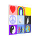 "peaceloveunity Mosaic" is a painting of symbols that represent global themes of diversity, peace, love, interdependence, and humanity. This version of the artwork is printed on metal.