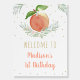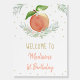 Welcome your party guests with an adorable personalized sign. This cute design features watercolor peach, flowers and faux gold glitter confetti.