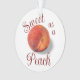 Show your love for summer with this peach theme ornament. This velvety, sweet peach design features warm and bright tones of blush, scarlet, amber, coral and lilac. Personalize by changing or removing the text. I created this pattern from an image in my original acrylic painting.