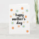 Designed with a bright white background, this Mother’s Day card centers on the words “happy mother’s day” in smooth black lettering that curves across the middle. Around the message, simple daisy-like flowers drift in a loose ring, as if they’re gathering close in a friendly embrace ❤️. The petals come in soft peach, calm sky blue, and creamy off-white, keeping the look gentle and easy on the eyes. Each bloom has a warm golden-yellow center that adds a sunny touch 🌼. The flowers are spaced so your gaze moves naturally from one to the next and back to the text, like a quiet, caring circle around the greeting. Slight shading and softened edges give the petals a subtle cutout feel without adding clutter. The final detail is the scattered blossoms framing the central black text, with yellow centers punctuating the white space.