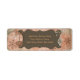 Holiday return address labels with a peach background with white and brown snowflakes, ornaments, snowflake circles, and a brown frame that you can easily add your name and address to before ordering.
