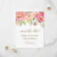 This peach and pink peony flowers 80th birthday save the date is perfect for an elegant milestone birthday party. The floral design features a beautiful arrangement of watercolor peonies in shades of blush and coral matched with dainty faux gold foil calligraphy.
