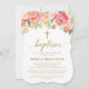 Peach and Pink Peony Flowers Baptism Invitation