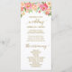 This peach and pink peony flowers wedding program is perfect for an elegant wedding. The floral design features a beautiful arrangement of watercolor peonies in shades of blush and coral matched with dainty faux gold foil calligraphy. Include the name of the bride and groom, the wedding date and location, thank you message, order of service, bridal party and an optional "in loving memory" memorial.