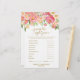This peach and pink peony "guess the right price" game is perfect for an elegant girls baby shower. The front of the game card features "guess the right price", and the back of the card features "what's in your phone". The floral design features a beautiful arrangement of watercolor peonies in shades of blush and coral matched with dainty faux gold foil calligraphy. Personalize the front of the card with the name of the mom-to-be and baby shower date. You can personalize the game questions by clicking the "customize" button.