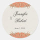 This beautiful design, called Peach and Sage Elegant Scroll, would be an elegant and dramatic way to set the tone for your wedding or event. The background is a peach color. At the top and bottom are filigree scroll patterns in a soft sage green with a cream inset for your text. This set has invitations, save the date cards, response cards, thank you cards, table number tent cards, envelope seals, wine labels, binders, return address labels and many more day-of wedding stationery pieces, favors, and gifts available. Use the envelope seal stickers for any of your DIY gifts - these are available in both large and small sizes! All elements are printed on our high quality products, they do not include any real gold, jewels, embossing, or other textile elements. All designs are copyright Noteable Expressions, Inc. All rights reserved.