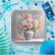 Dahlia bouquet in gray vase on a marble shelf