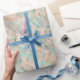 Peach Aqua Green Tropical Leaves Wrapping Paper