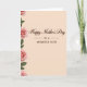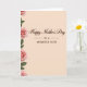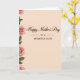 Designed with a soft peach background, the card sets a gentle, affectionate tone that feels like a quiet hug ❤️. Centered on the front is a large celebratory phrase in a flowing cursive-style font, colored a rich earthy brown that stands out clearly against the warm backdrop. Just beneath it sits a smaller line of appreciation, also in brown, aligned to the center and written to a close family member in a tender, caring way. Along the left edge, a vertical border of blush-pink roses drifts downward, their layered petals curling open as if freshly arranged for someone special 🌼. Deep green leaves weave between the blooms, adding contrast and giving the flowers a grounded, natural look. The soft shading on the petals and foliage suggests gentle lighting, like morning light falling across a table where a note has been left for a loved one. The layout keeps plenty of open space on the right, letting the centered text breathe while the floral border leans in like a supportive companion. The roses vary from pale pink to slightly deeper blush, with small highlights on the petals and darker green accents tucked behind the leaves.