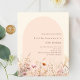 An elegant wildflower invitation. A cream, beige colored background and a peach colored arch. Decorated with watercolored wildflowers in beige, pink.