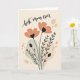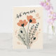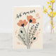 This card features a calm, modern floral illustration paired with a loving message for mom ❤️. Near the top, the words “best mom ever” curve in a dark, flowing handwritten style, standing out clearly against the light background. Below the text, a bouquet of simplified flowers grows upward from the bottom edge, as if reaching toward the message with quiet affection. Two main blooms in a soft coral-peach shade open wide, and their dark, heart-shaped centers add a tender, close-to-the-heart detail. Slim dark stems, small leaves, and a few closed buds sit nearby, suggesting a gentle moment of care and closeness 🌼. The backdrop is a creamy off-white with muted, irregular shapes in pale gray-green and soft peach layered behind the flowers for subtle depth. Light peach dots are scattered around the design, and the blossoms sit slightly off-center with the stems rising from the lower margin.