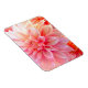 A harmonious blend of color and elegance with large, vibrant dahlia flowers set against a soft peach pink background.
