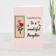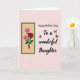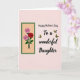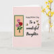 This greeting card features a tall, narrow rectangle on the left holding three roses, with two soft pink blooms surrounding a deep red rose at the center ❤️. Slender green stems and detailed leaves sit against a sandy-toned panel, edged by a dark forest-green border that adds a calm, garden feel. On the right, the message “Happy Mother’s Day To a wonderful Daughter” appears in flowing, cursive-style lettering, set in a dark tone that stands out clearly on the pale peach background. The words are arranged in a neat stack, leaving open space around them so the design feels airy and affectionate rather than crowded. Four small butterflies with yellow wings and darker markings drift across the right side, their angled positions suggesting a gentle flutter as if drawn toward the greeting 🌼. The soft blush backdrop and the tender pairing of pink and red petals create a quiet sense of closeness, like a fond look shared between loved ones. The pale peach field fills most of the card, with the butterflies scattered around the text and the rose panel anchored along the left edge.