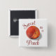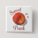 Show your love for summer with this peach theme button. This velvety, sweet peach design features warm and bright tones of blush, scarlet, amber, coral and lilac. Personalize by changing or removing the text. I created this pattern from an image in my original acrylic painting.