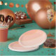 Simple swirl pattern, half circles cascade across the plate in a fading ombre colouration - ranging from Orange Peach and cream, separated by a yellow line, Use this design to add a logo, name, slogan or even an image of your choice. Perfect for birthdays, office parties, bbq’S and more!