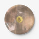 Peach & Copper Bronze Chic Modern Monogram Gold Paper Plates