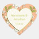 Peach, green, and cream floral design wedding keepsake sticker. Personalize with your own information. There's a matching wedding invitation available.