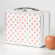 This is a standard metal lunchbox that appears to work just fine. We designed this box ourselves with an uploaded photo and custom text on the front and back. It looks absolutely beautiful except the front of the lunchbox is not centered like it shows in the photo. The print borders don't align with the inset flat part of the box where the preview photo online showed it perfectly centered in there. The back looks nice and centered though.
