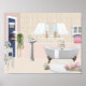 Peach Decorative Bathroom Poster with claw foot bathtub