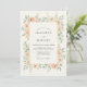 Soft peach blossoms mingle with delicate greenery in a romantic, painterly style. This design evokes a feeling of gentle romance and natural beauty. The muted color palette creates a soft, dreamy atmosphere perfect for a special occasion.