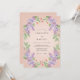 This romantic design features a warm peach backdrop adorned with lush purple lilacs and delicate pink blossoms. Ethereal watercolor strokes create a soft, airy atmosphere perfect for a springtime nuptial. Vibrant green leaves complement the pastel palette, adding a touch of nature-inspired elegance. The botanical arrangement evokes a sense of whimsical charm and timeless beauty.