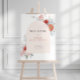 Celebrate in style with this elegant peach and soft dusty blue floral arch welcome sign.