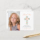 This one photo First Holy Communion thank you card features peach and mint green floral watercolor cross with yellows, green and greenery leaves and foliage. Add a personal message on the back of the postcard. Perfect for any religious event: First Communion, Baptism, Christening or Confirmation. For inquiries about custom design changes by the independent designer please email paula@labellarue.com BEFORE you customize or place an order.
