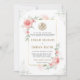 Peach Floral Greenery Gold Frame Muslim Wedding Invitation