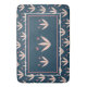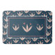 This bath mat has a border of peach florals, with red hearts. In the center of the design, there's a solid navy blue rectangle that has a thin double border, made up of white and peach. On top of the navy rectangle there are three larger versions of the floral design. The background color can be customized.
