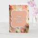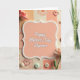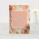 This Mother's Day card features a peach-toned, curved plaque at the center, bordered with tiny dots and small floral details that feel tender and caring. Across the plaque, the message “Happy Mother’s Day Stepmom” sits in flowing white lettering, neatly centered and easy to spot. Behind it, a patchwork background of soft squares alternates creamy ivory and gentle peach, suggesting a calm, cozy setting like a cherished keepsake. Some squares include fine botanical and damask-like line patterns in a muted terracotta, adding texture without crowding the design. Two soft-petaled flowers frame the scene—one near the top left with a touch of yellow and another at the bottom right beside a fresh green bud—bringing a gentle, affectionate closeness ❤️. Rose-gold wire hearts, pearl-like beads, and small four-hole buttons in teal and ivory are scattered around, like little tokens exchanged between loved ones 🌼. The overall palette stays warm and muted, with the plaque floating over the quilt-like grid of patterned and solid squares.