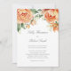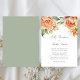 Set a romantic tone with this elegant peach floral wedding design featuring soft watercolor blooms arranged in a graceful top border. Paired with delicate script typography and a clean, minimalist layout, this design is perfect for spring, summer, or garden weddings. The airy composition keeps your details beautifully readable while adding a touch of timeless sophistication. Fully customizable to reflect your names, date, and wedding details.