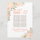 These beautiful large sized wedding table number cards include a seating chart or list of ten names to make it easy for your guests to find the right table. They feature an elegant rustic boho chic design with hand painted watercolor roses, blossoms, and garden greenery in shades of pale orange and coral peach. Perfect for adding country charm and style to your wedding reception.