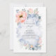 Peach Flowers and Greenery Dusty Blue Birthday Invitation