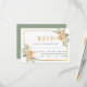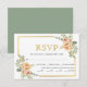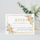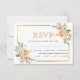 Peach watercolor flowers and gold frame floral wedding RSVP reply card with meal choice. This elegant design displays a gold frame and peach watercolor cactus flowers and succulent leaves on the upper right and bottom left corners and your text in gold and black.