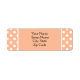 This trendy and cute design features white polkadots against a soft peach pastel.