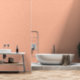 Elegant seamless pattern in soft peach tones, featuring a detailed geometric design. The repeating motifs include rounded shapes, ovals, and floral-like elements arranged in a rhythmic, diamond-shaped layout. Perfect for use in home decor, stationery, textiles, gift wrap, and digital backgrounds. This warm, retro-inspired pattern adds a touch of harmony and subtle sophistication to any product.