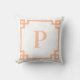 Peach Greek Key Border Monogram Throw Pillow