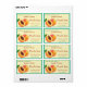 Two ripe peaches, one sliced in half with the pit still inside and a leaf are tucked into the left lower corner of this label with a background of pale yellow all surrounded by a border and background of moderate turquoise green which make this a perfect label to use on your jars of homemade peach jam or preserves. The text is in template form so you can change it to whatever you wish.