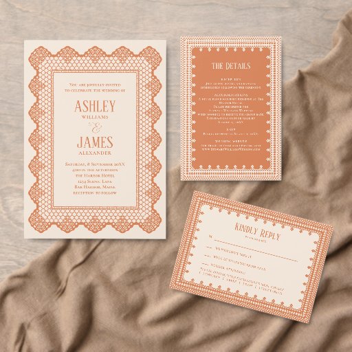 Peach Lace Elegant Wedding Invitation, RSVP Card